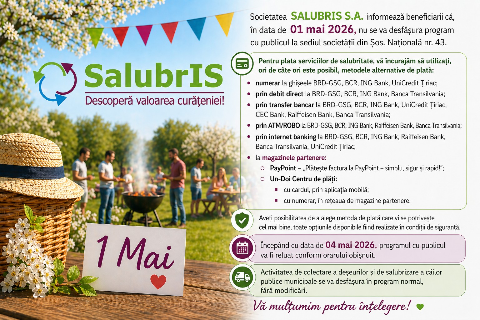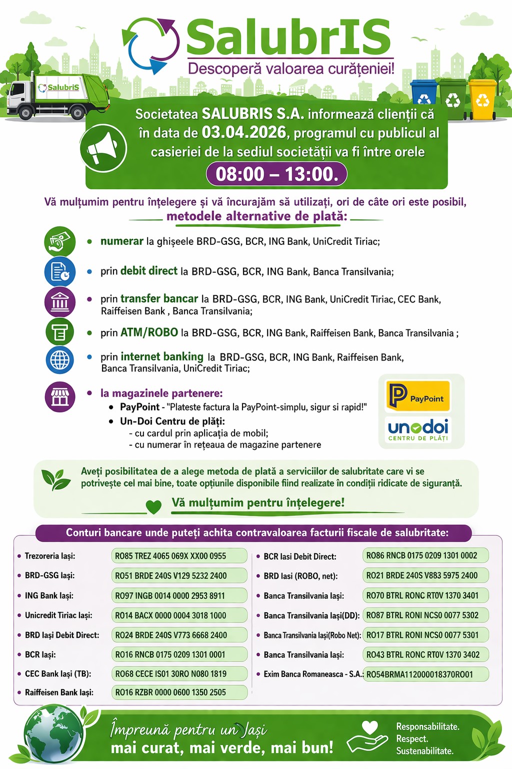 Sprijinim cetatenii cu informatii privind colectarea separata a deseurilor.